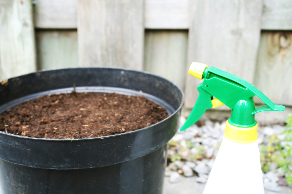 Nadat ik de worteltjes heb toegedekt met een laagje aarde, sproei ik de toplaag ietwat vochtig. het hoeft geen zwembad te worden. Geef de worteltjes de kans om vocht te zoeken.